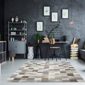 „NEW VILLA SQUARES“ Moderne-Teppichkollektion Farbe 912 Grau-Creme Design NVI02 Rechteckig, Rund, Quadratisch und Läufer